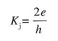 在描述约瑟夫逊效应的方程式中,一般的约瑟夫逊常数用Kj来表示,它等于2倍的基本自然常数e和h之比。即